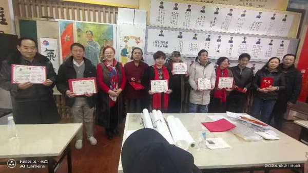 1943年新春,陕甘宁边区创造性地开展了一场轰轰烈烈的“拥军优属、拥政爱民”运动,促使军政、军民关系明显改善,为边区战胜严重困难、巩固持久抗战打下了坚实基础。八十年来,军爱民、民拥军,双拥工作在中国革命、建设、改革开放各个历史时期发挥了不可替代的重要作用,成为我党我军我国人民特有的优良传统和政治优势。为纪念延安双拥运动80 周年,在军民融合包装发展建设工作委员会、中国国防教育促进会指导下,北京红色光彩书画院有限公司、中国书画家研究会文化艺术委员会、中国女子书画院、中海洋(北京)文化艺术院、潢川县大中小学劳动教育综合素质实践促进会、怀化市洪江区红色文化研究会、北京通航军融科技管理有限公司、北京陆航航空发展有限公司等单位于2023年12月21日在北京市丰台区市民活动中心联合主办了《纪念延安双拥运动80 周年书画展》启动仪式。来自社会各界的代表100余人参观了展览。