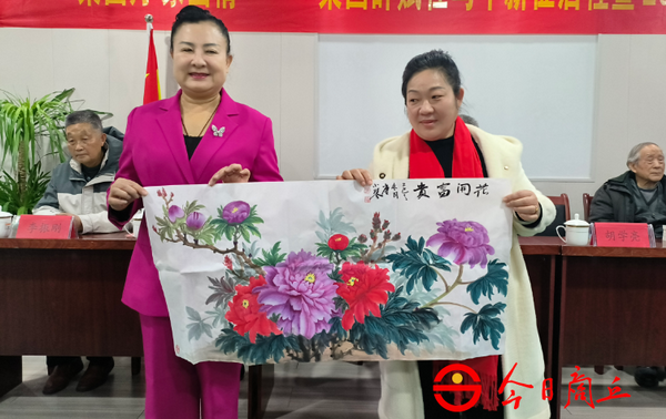 活动在庄严的国歌声中开幕。画家唐小琴向大会赠送《花开富贵》牡丹图,寄寓文运昌隆。