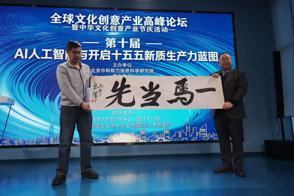 国际数字传媒港北京1月6日电 记者汪志民 1月5日,第十届全球文化创意产业高峰论坛暨中华文化创意产业节庆活动在北京市海淀区上地十街的上地国际人才会客厅成功举办。本次活动以“AI人工智能与开启十五五新质生产力蓝图”为核心主题,汇聚了技术开发人员、媒体人、企业家、画家、书法家等各界嘉宾50余人,共同探讨人工智能时代文化创意产业的创新发展路径,为“十五五”时期文化产业新质生产力培育凝聚智慧力量。