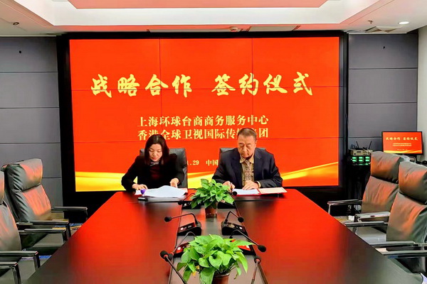 国际数字传媒港上海电 记者李佳玲 日前,香港全球卫视国际传媒集团与上海环球台商商务服务中心在上海正式签署战略合作协议。双方将围绕“两岸一家亲”理念,携手推动两岸文化深度交流与合作,并向全球传播中华文化、促进世界和平发展,助力提升中华文化国际影响力。